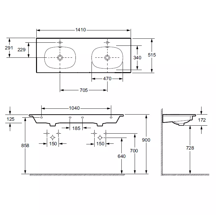 Disponible en version sans trou de robinet pour robinetterie murale, voir "articles similaires" en bas de la page.