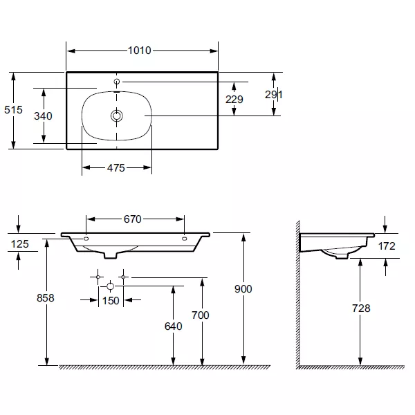 Disponible en version sans trou de robinet pour robinetterie murale, voir "articles similaires" en bas de la page.