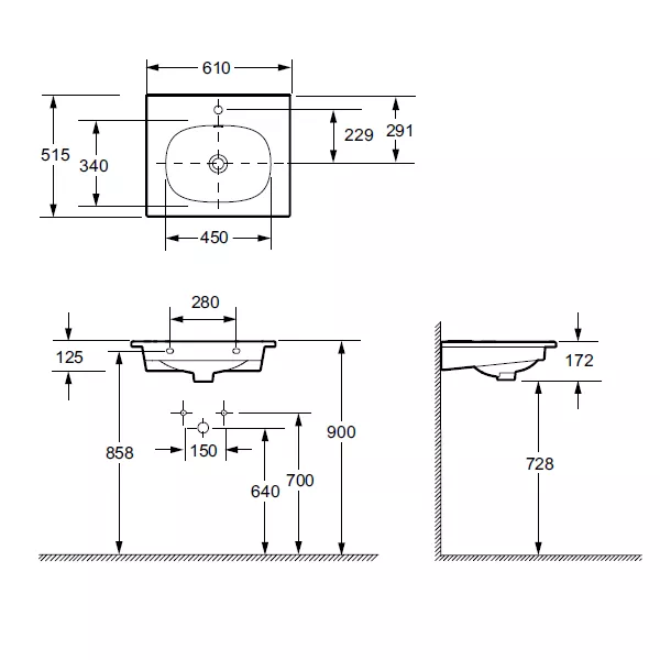 Disponible en version sans trou de robinet pour robinetterie murale, voir "articles similaires" en bas de la page.