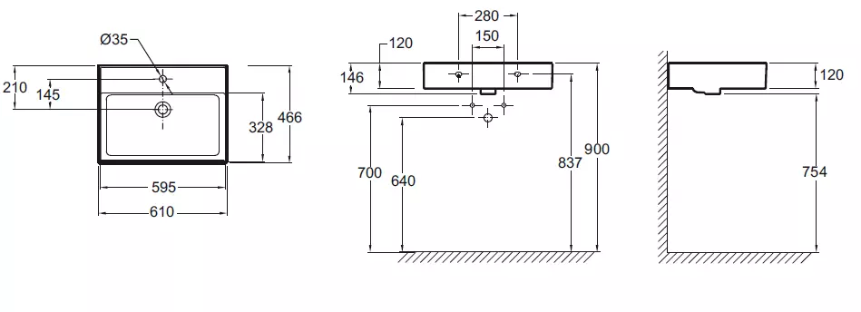 Plan-vasque/vasque à poser en céramique.L61* x P46,6 cm* autoportant.Livré sans bonde.Percé 1 trou.Emaillé 3 faces.