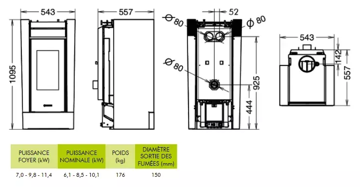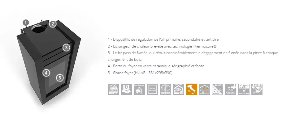Poêle à bois canalisable avec un rendement de plus de 87,1%