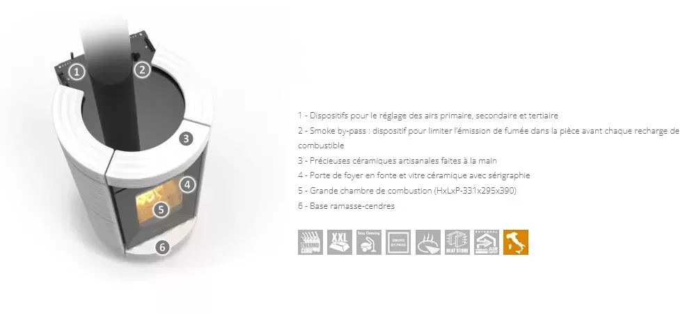 Poêle à bois canalisable avec un rendement de plus de 87,1%