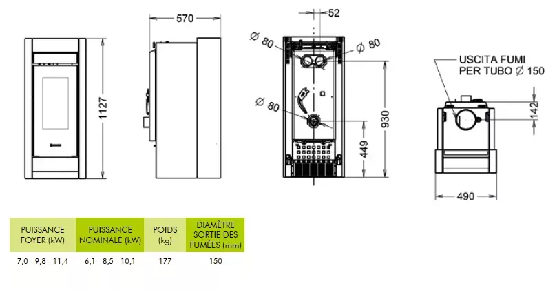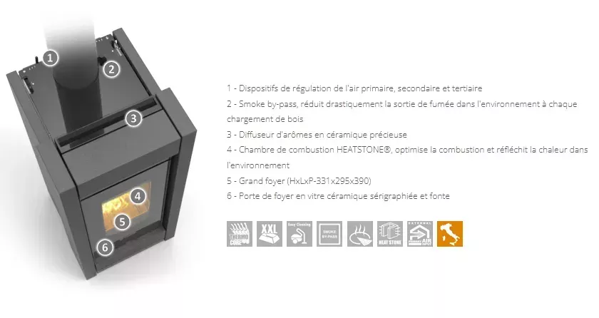 Poêle à bois canalisable avec un rendement de plus de 87,1%