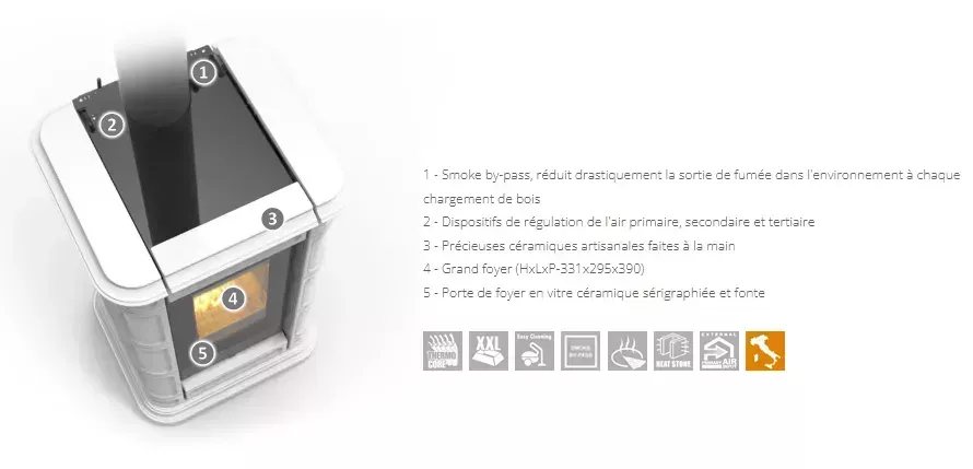 Poêle à bois canalisable avec un rendement de plus de 87,1%