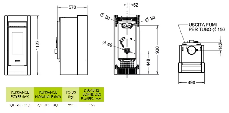 Poêle à bois canalisable avec un rendement de plus de 87,1%