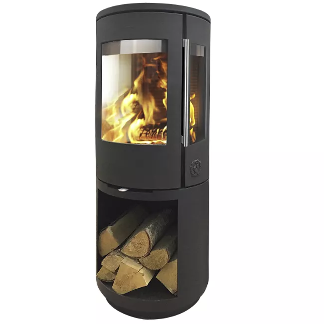 Morsø 7493 a une haute base supplémentaire avec le dépôt de carburant, qui donne une apparence exclusive au fourneau. Le dépôt de carburant donne une vue ouverte du petit rondin journal rustique empilent et crée l'atmosphère dans la pièce.