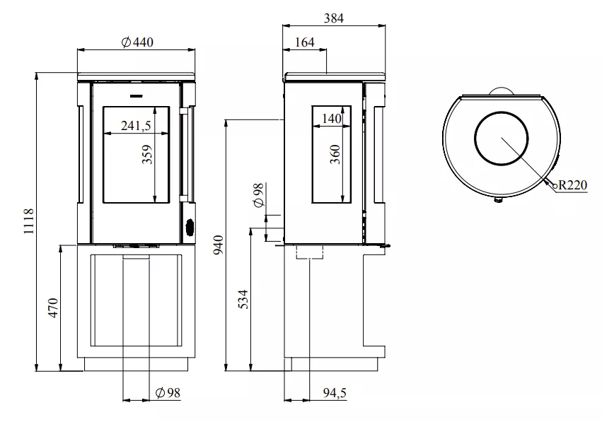 Hauteur 1118 mm