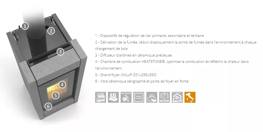Poêle à bois canalisable avec un rendement de plus de 87,1%