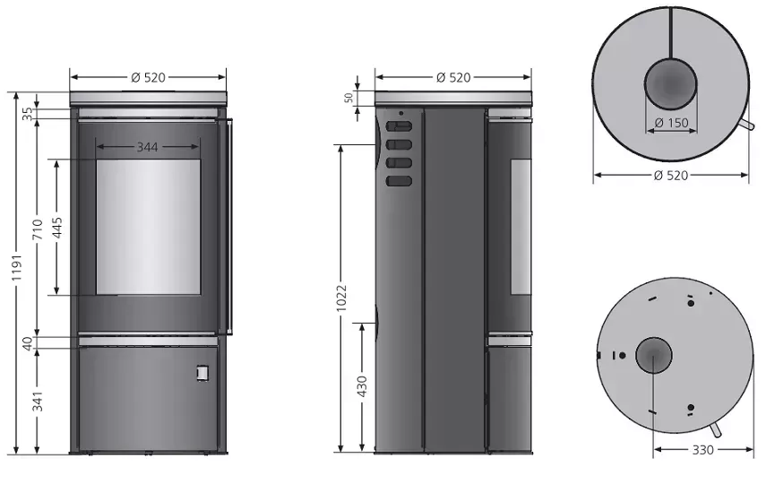 Diam raccordement fumée 150 mm