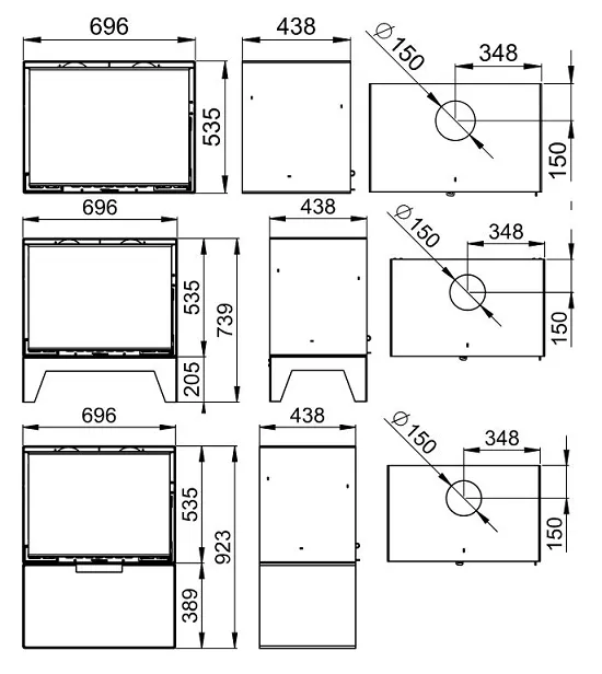Dimensions du foyer : L 580 x H 297 x P 335 mm