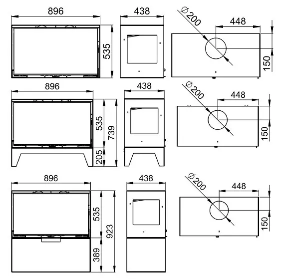 Dimensions du foyer : L 580 x H 297 x P 335 mm