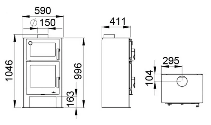 Dimensions du foyer : L 400 x H 295 x P 328 mm