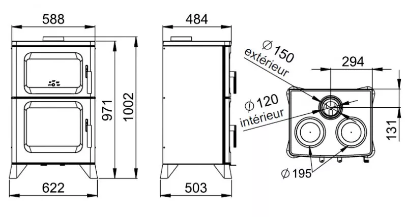 Dimensions du foyer : L 400 x H 205 x P 335 mm