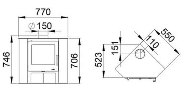 Distance minimale des surfaces inflammables : côté 40cm / arrière 40cm / avant 150cm