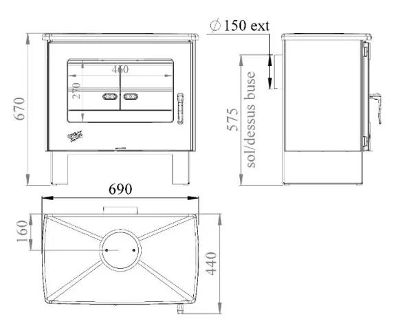 Dimensions : H 67 x L 69 x P 39,8 cm.