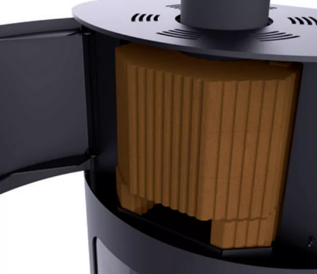 Le poêle OFEN 22 est un poêle de semi-accumulation avec une masse de 76 kg de pierre réfractaire.