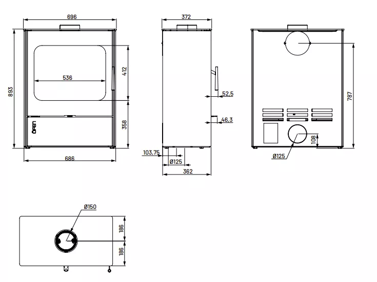 Le poêle à bois OFEN 25 de LORFLAM est un poêle à structure acier et intérieur chamotte