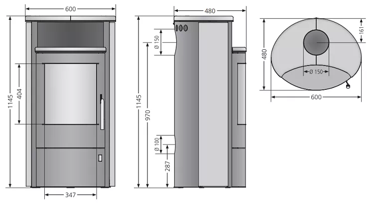 Hauteur 1120 (acier), 1145 (pierre/céramique) mm