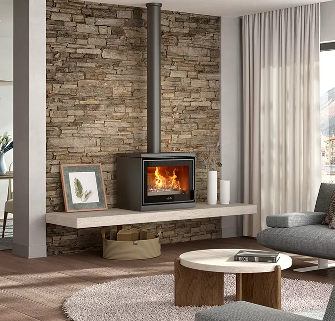 Le système vitre propre permet de ralentir l’encrassement du vitrage. Une arrivée d’air sur le haut de la vitre crée un voile de protection. L’air préchauffé est propulsé le long du vitrage. Il déclenche la combustion des gaz et des matières volatiles protégeant ainsi la vitre contre la fumée et le dépôt de suie.