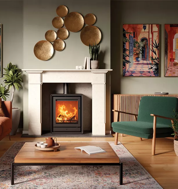 Profitez du spectacle des flammes contemporaines avec la liberté et le style d’un poêle autoportant.