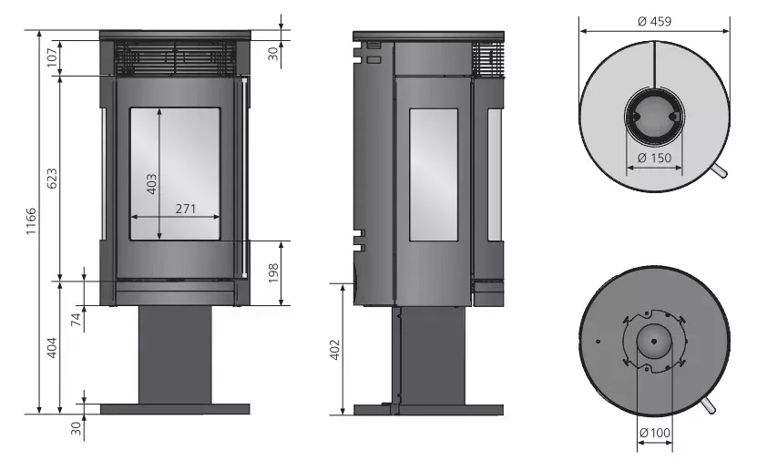 Hauteur 1141 (acier/verre), 1166 (pierre) mm