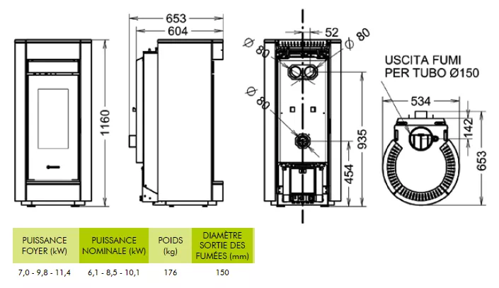 Poêle à bois canalisable avec un rendement de plus de 87,1%