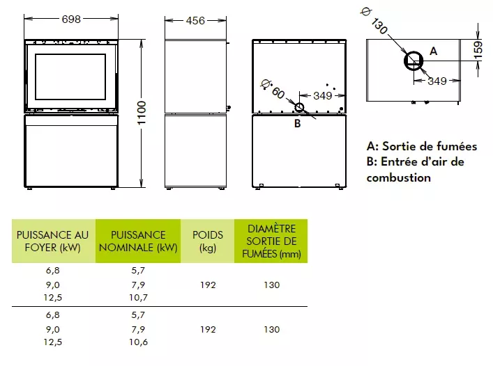 Possibilité de prélever l’air comburant à l’extérieur Ø 60 mm