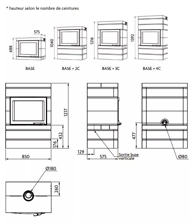 Poids : de 584 à 963 kg selon le modèle (nombres de ceintures de pierre ollaire et finition.