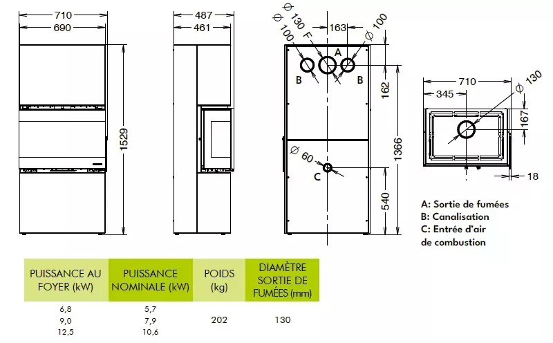 Équilibre parfait entre un poêle et une cheminée à bois, il offre tous les avantages économiques du poêle, sans renoncer à l’attrait du feu panoramique d’une cheminée à trois faces.