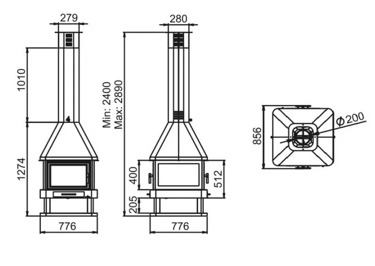 Dimensions du foyer : L 583 x H 310 x P 600 mm