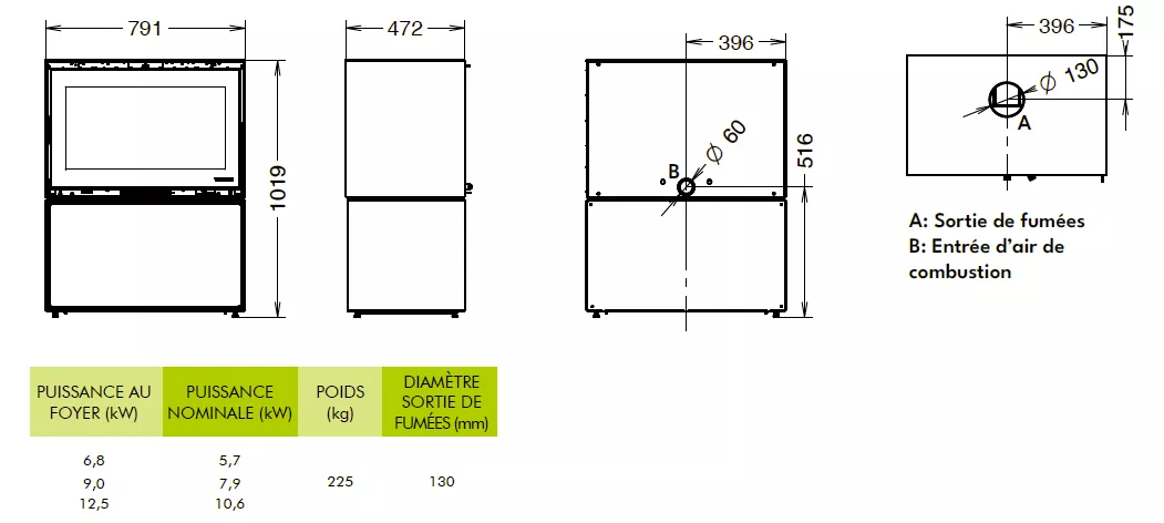 Sortie des fumées Ø 130 mm.