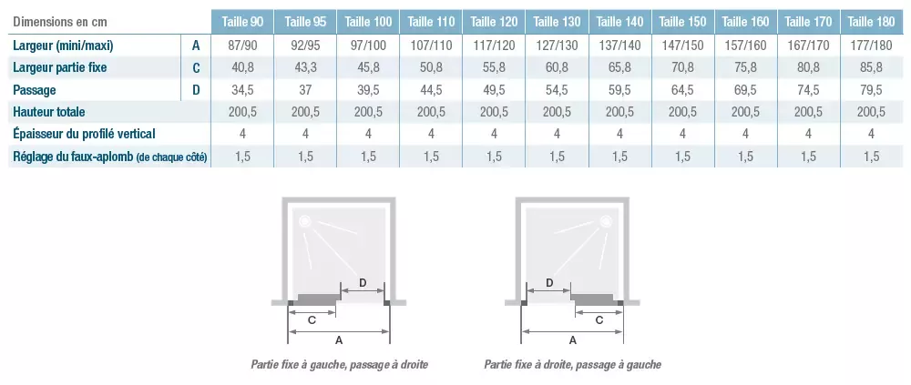 Nettoyage facilité : non chevauchement de la porte sur la partie fixe, déclipsage de la porte en partie basse si besoin