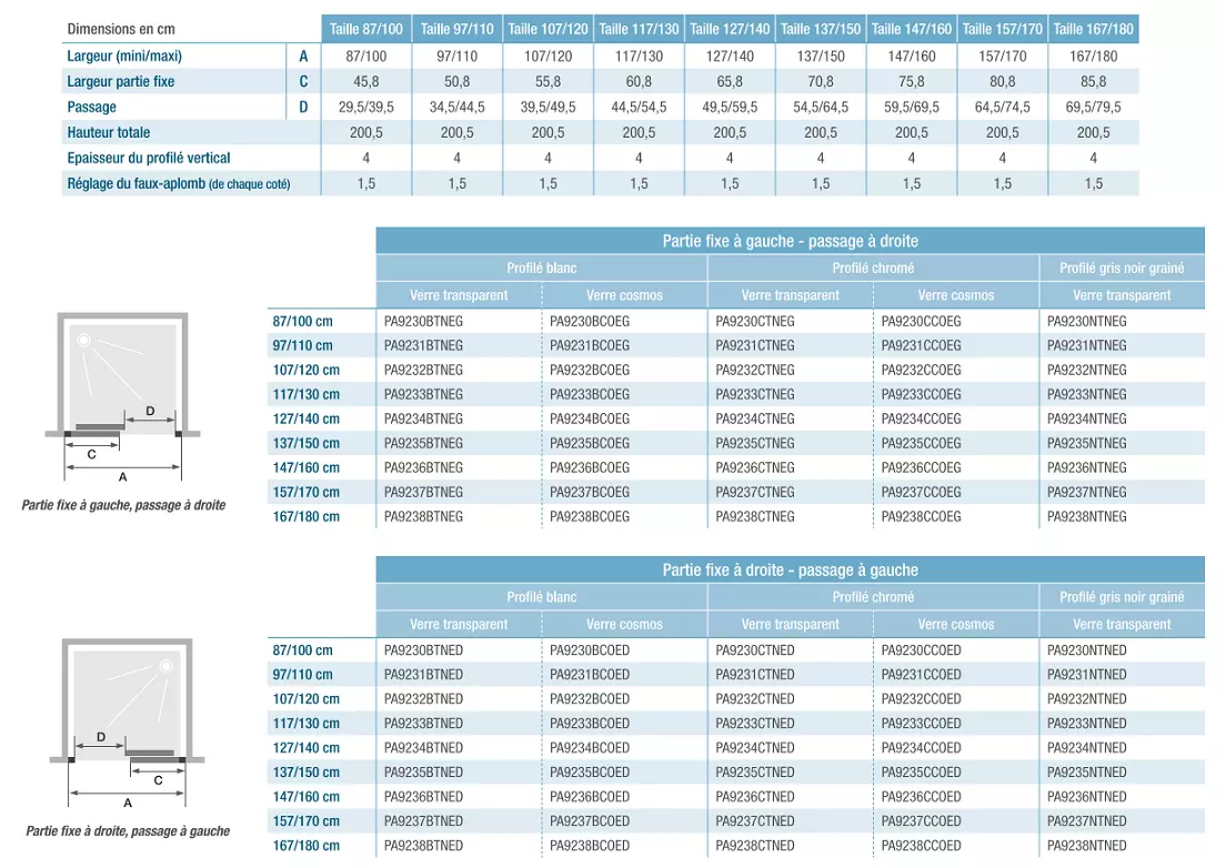 Smart Design C Extensible sans seuil est une paroi de douche avec 1 volet coulissant sans seuil qui facilite l’accessibilité tout en réduisant l’encombrement de votre douche.
