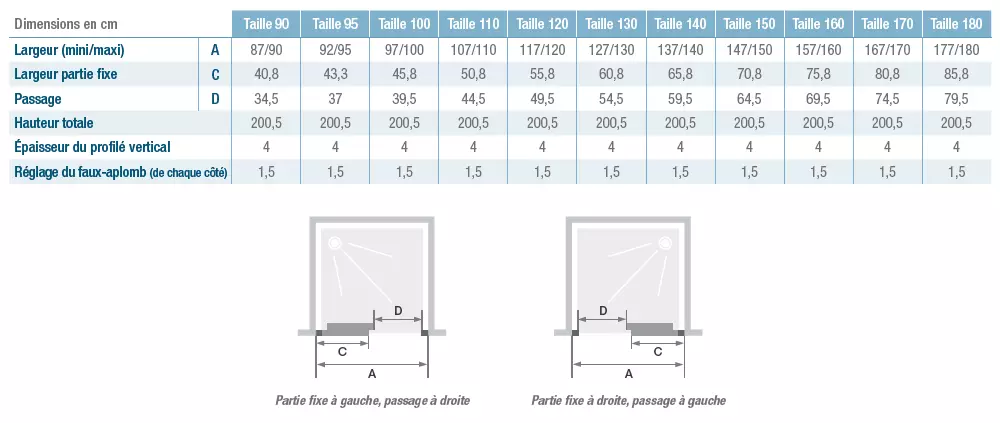 Nettoyage facilité : non chevauchement de la porte sur la partie fixe, déclipsage de la porte en partie basse si besoin