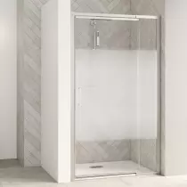 Porte pivotante avec une partie fixe, à large plage de réglage