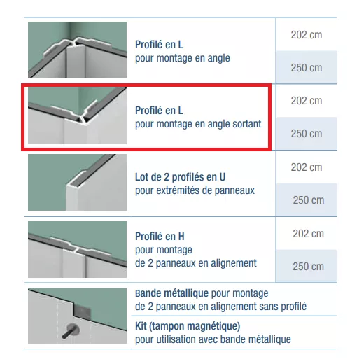 Accueil > Divers > Kinedo > Profilé en L Blanc pour montage Kinewall 250cm en angle sortant - KINEDO Réf. KINWALL250LSB
