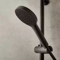 Douchette 3 jets à bouton : Large couverture d'eau grâce au format généreux de la douchette (Ø 120 mm) et activation des jets par pression, très simple à manier même avec les mains mouillées.