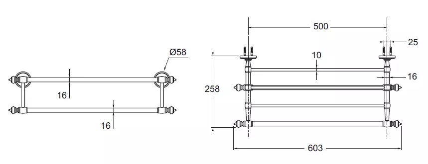 Rack à serviettes.Style rétro avec détails ornementaux.Longueur totale : 603 mm.Profondeur : 258 mm.Hauteur : 152 mm.