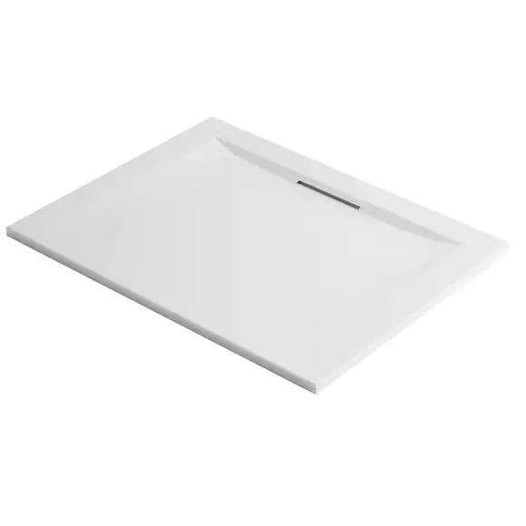 Pas de capot de bonde disgracieux au niveau des pieds mais une fente intégrée et discrète côté mur, et de la même couleur que le receveur.