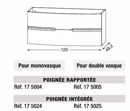 Accueil > Divers > Sanijura > Sanijura Part 4 > S/T NONA LAQUE 2 NIV L:1200 2 TIROIRS MONOVASQUE Sanijura Réf. 175024