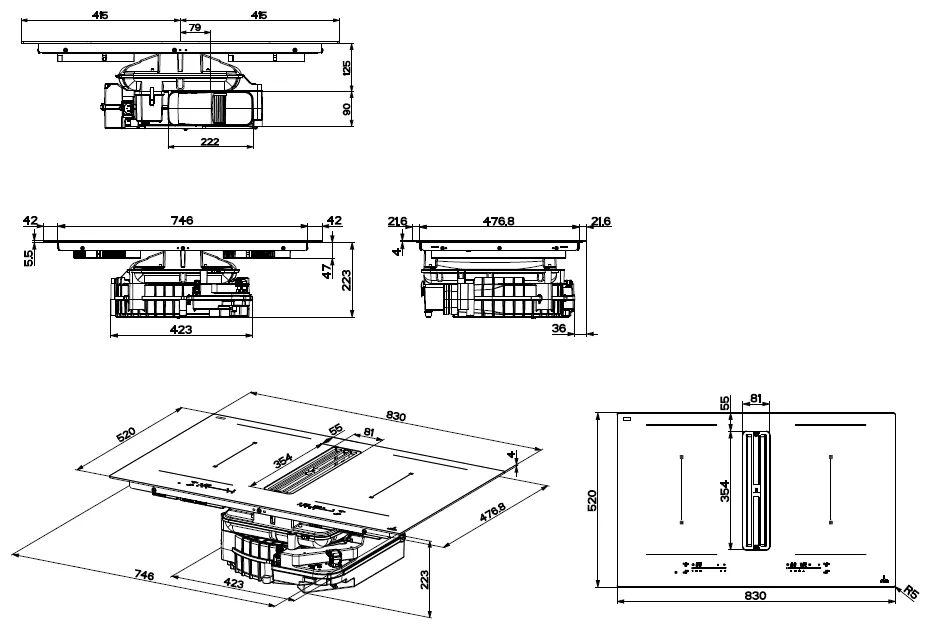 Table aspirante ONYX NOIR MAT 830 mm verre noir MAT,