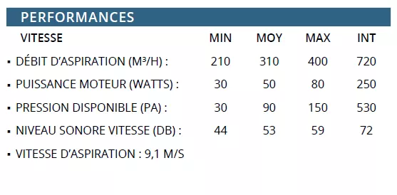 Débit int 720 m3/h / max 400 m3/h