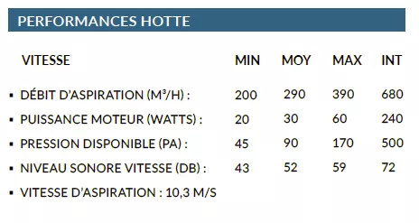 Niveau sonore mini 43 dB(A) / max 59 dB(A) / int 72 dB(A)
