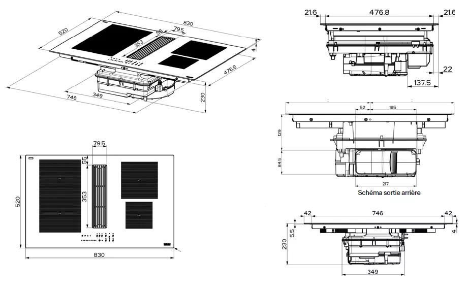 4 foyers indépendants avec booster, dont 1 zone FLEXI 380x210 mm et 2 foyers de 200 et 145 mm