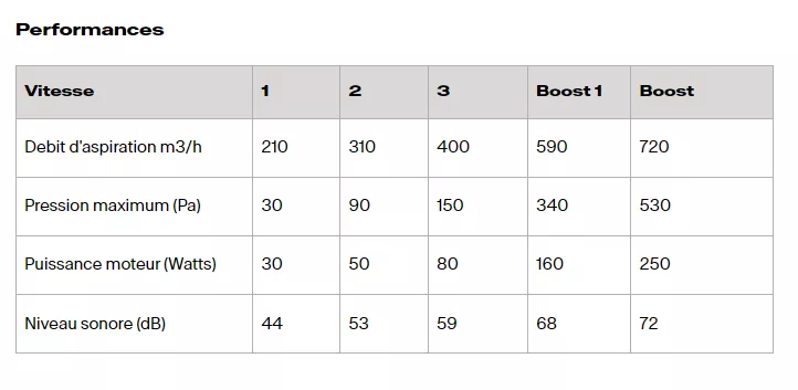 Débit int 720 m3/h / max 400 m3/h