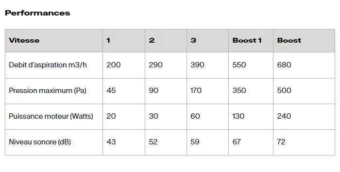 Débit int 680 m3/h / max 390 m3/h