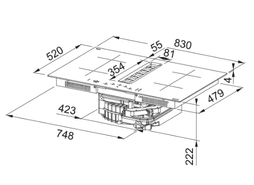 Table aspirante MARIS 2GETHER ELLIPSE 830 mm verre noir
