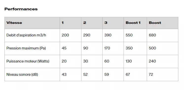 Débit int 680 m3/h / max 390 m3/h