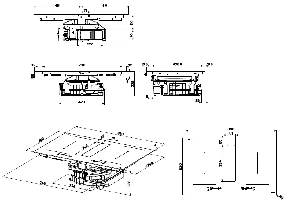 Table aspirante ONYX CUIVRE 830 mm verre noir MAT