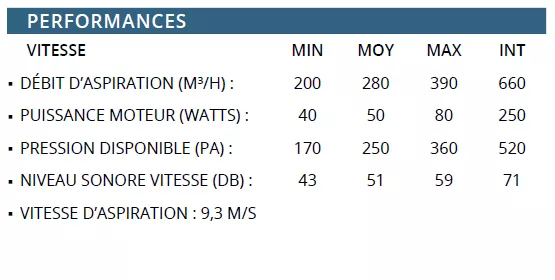 Niveau sonore mini 43 dB(A) / max 59 dB(A) / int 71 dB(A)